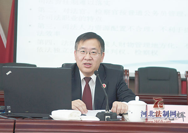 ![]() 大图为全省检察机关司法体制改革试点工作推进会会场。谷晓哲摄 ![]() 上图为最高人民检察院司法体制改革领导小组办公室主任王光辉结合检察工作实际,就司法体制改革与检察改革中的若干重大问题向全省检察人员进行了深入阐述。谷晓哲摄 围绕“完善检察人员分类管理制度、完善人民检察院司法责任制、健全检察人员职业保障制度、探索建立省以下检察院人财物统一管理体制”进行改革 河北法制网讯(刘树奇牛继芬)3月7日,全省检察机关司法体制改革试点工作推进会召开,受省检察院党组书记、检察长童建明委托,省检察院党组副书记、常务副检察长史建明主持推进会,并就全面做好全省检察机关司法体制改革工作提出明确要求。省检察院副检察长何秉群讲解了“关于完善人民检察院司法责任制的若干问题”。省检察院党组成员、反贪局局长李勤,省检察院党组成员、反渎局局长贾振之出席会议。省检察院党组成员、政治部主任高树勇围绕“关于检察工作人员分类管理等若干问题”作了讲解。 作为推进会的议程之一,同时作为“河北检察讲堂”第十五讲的课题,最高人民检察院司法体制改革领导小组办公室主任王光辉结合检察工作实际,就司法体制改革与检察改革中的若干重大问题为全省检察人员进行了深入阐述。 司法体制改革,是党的十八大作出的重大战略部署。2016年是司法体制改革全面推进之年,也是攻坚之年。我省作为司法体制改革第三批试点,司法体制改革工作已经正式启动进入实施阶段。省检察院成立了司法体制改革领导小组,制定了司法体制改革试点工作实施方案,围绕完善检察人员分类管理制度、完善人民检察院司法责任制、健全检察人员职业保障制度、探索建立省以下检察院人财物统一管理体制等四个方面,在沧州、邯郸两个市级检察院,任丘、献县、峰峰矿区、肥乡四个基层检察院,以及省检察院民事行政检察处先行试点。 推进会上,史建明就做好全省检察机关司法体制改革工作强调,全省各级检察院要把抓改革作为一项重大政治任务,在大政方针确定后,要在抓落实上下功夫。要加大督促落实力度,建立全过程、高效率、可操作的改革落实机制,严格按照《河北省检察机关司法体制改革试点工作实施方案》,严格按照时间节点和计划步骤,集中力量一项一项抓好落实,高标准推进各项改革任务。要开展全员学习培训,每位干警都要认真学习领会司法改革文件精神,理性看待改革中面临的问题,努力做改革的拥护者、支持者、参与者和推进者,坚定不移地推进司法体制改革。 史建明要求,试点检察院要坚持先行先试,把以完善司法责任制为核心的各项改革任务落实到位,确保圆满完成改革试点工作任务,形成可复制的经验。没有作为试点的检察院也要成立司法体制改革领导机构和办事机构,掌握改革政策,跟进了解改革进度,做好各项改革准备工作。要明确主体责任,推动各项改革措施落实到位。省检察院党组、各内设机构和市、县检察院党组在不同层面负有抓改革落实的主体责任。省检察院机关各项改革牵头部门特别是处长,要全程负责,具体抓,不出现真空地带。 何秉群在解读最高检《关于完善人民检察院司法责任制的若干意见》时指出,完善司法责任制是全面推进依法治国的必然要求;完善司法责任制是必须紧紧牵住的司法改革的“牛鼻子”,在司法体制改革中居于基础性地位;完善人民检察院司法责任制,是保障公正司法,提高司法公信力的有效措施;完善人民检察院司法责任制是促进检察人员提高自身素质,推进检察队伍正规化、专业化、职业化建设的迫切需要。 会议强调,要重视调查研究,坚持把中央、省委、最高检政策同我省实际结合起来。各市、县院检察长要统筹好上级和地方两个层面的要求,抓紧部署、督查落实。基层检察院要抓紧推进改革任务落实,集中精力打通“最后一公里”,确保各项改革措施落到实处。 会上,沧州市检察院党组书记、检察长王胜喜,邯郸市检察院党组书记、检察长张尚震介绍了本院司法体制改革前期准备工作情况。 |
