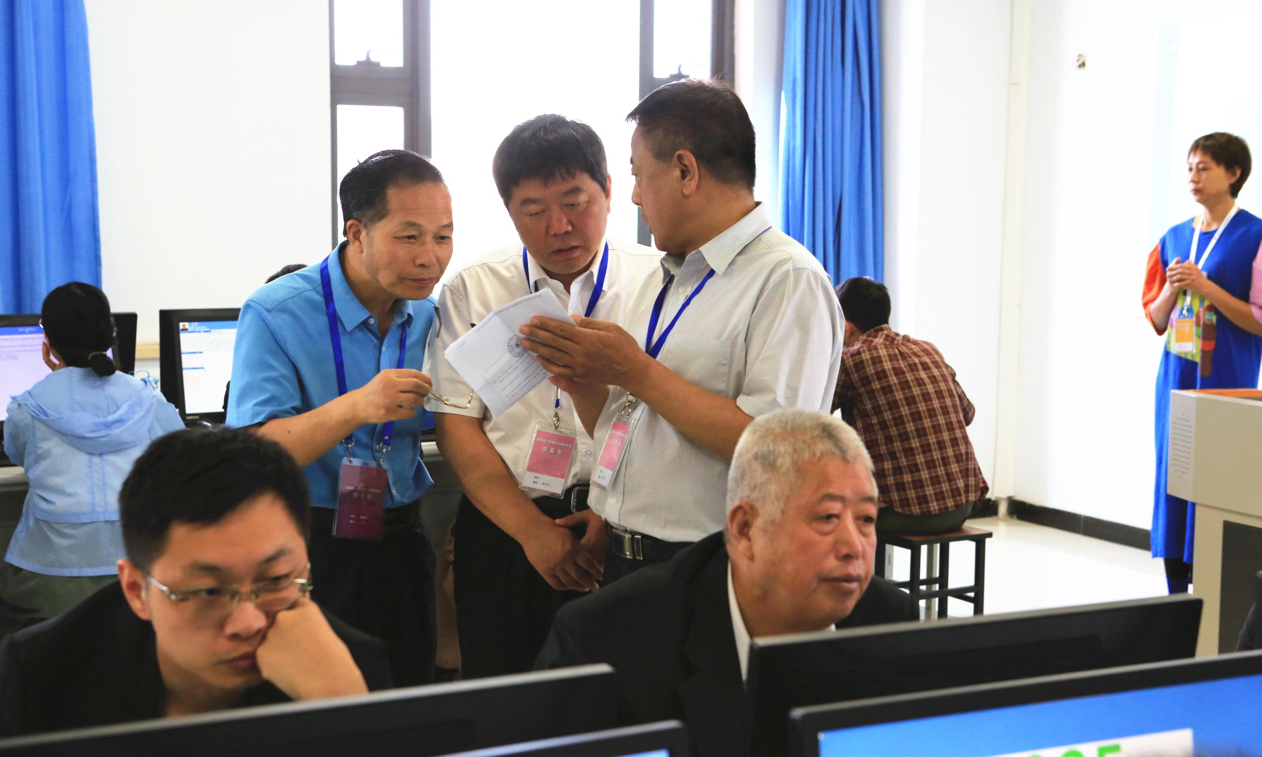 (图:巡考领导查看现场考试情况)