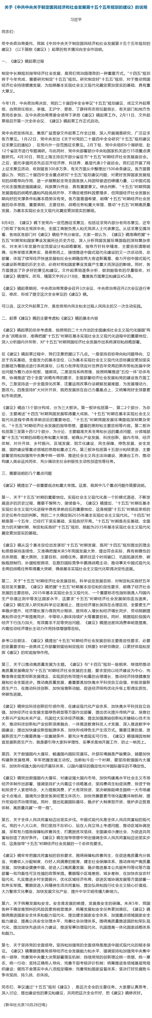 习近平:关于《中共中央关于制定国民经济和社会发展第十五个五年规划的建议》的说明