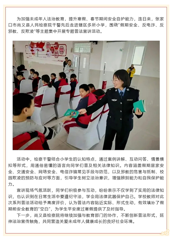 尚义检察:检校联动护成长 法治宣讲迎寒假