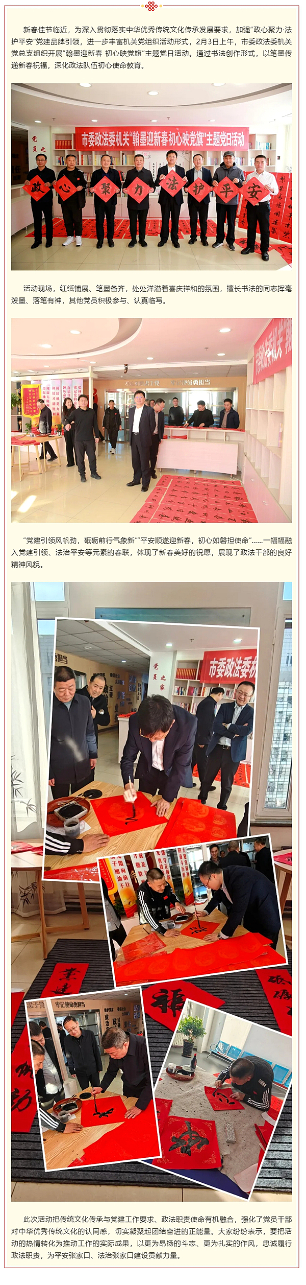 市委政法委机关开展“翰墨迎新春 初心映党旗”主题党日活动