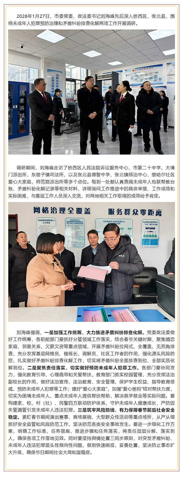 刘海峰赴县区调研预防未成年人犯罪和矛盾纠纷排查化解工作