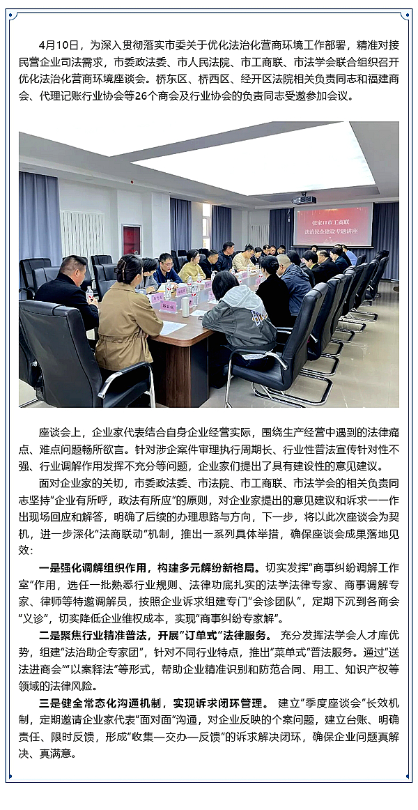 法商联动聚合力 共绘营商“同心圆”——张家口市委政法委、市人民法院、市工商联、市法学会四部门联合召开
