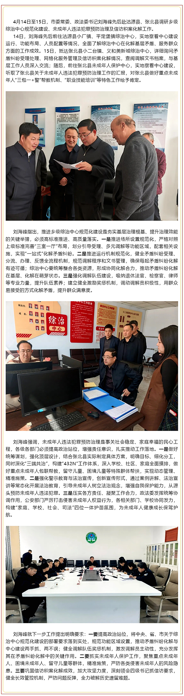 刘海峰赴沽源县、张北县调研综治中心规范化建设、预防未成年人犯罪及信访积案化解工作