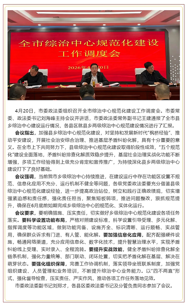 市委政法委组织召开全市综治中心规范化建设工作调度会